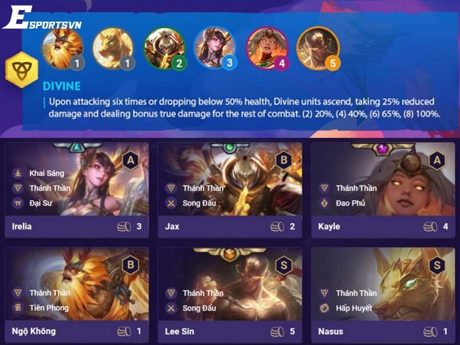 Thánh thần DTCL là một trong những tộc hệ độc đáo nhất, nơi mà các vị tướng sẽ thăng cấp và đạt đến đỉnh cao sức mạnh. Cơ chế này không chỉ mang đến lối chơi hấp dẫn mà còn mở ra vô vàn chiến thuật để bạn làm chủ mọi ván đấu. Cùng EsportsVN đi sâu vào cách hoạt động của tộc Thánh thần, hướng dẫn cách xây dựng đội hình và những mẹo để bạn chinh phục mọi đối thủ.